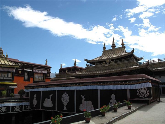 晚饭是顿涮蘑菇宴,鲜美之极,吃完饭看了看拉萨夜景。第二天一早我们去了大昭寺,布达拉宫。大昭寺就不多说了。进布达拉宫的时候,戒备森严,比机场安检还要严格,到达宫殿顶层附近,供奉的就是达赖喇嘛从四世以来的的金身。全部是用黄金铸造,上面镶嵌着珍珠玛瑙,翡翠钻石,令人眼花缭乱。金身大概都有五六米高,每尊雕像光是铸造黄金就用了几吨。但这些已经无法用金钱去衡量了。就是别的房间供奉的小雕像,大概十五厘米高,也是用8种合金铸造,他们的冶炼技术至今无法仿制,每一尊都是价值连城,再加上本身的艺术价值,真是人类瑰宝。可是房间内其他家具我就不敢恭维了,椅子看着就不舒服,坐上去肯定很难受。是不是专门为了修行才坐冷板凳的啊?到了布达拉宫顶上,可以鸟瞰整个拉萨市市容,与对面的雪山遥遥相对,觉阿告诉我,正对面就有一个天葬台。布达拉宫只开放了其中一小部分,参观下来大概2个钟头,我大呼没看过瘾。尽管如此,门票也很不好买,每天只卖1000张票,真是一票难求啊!