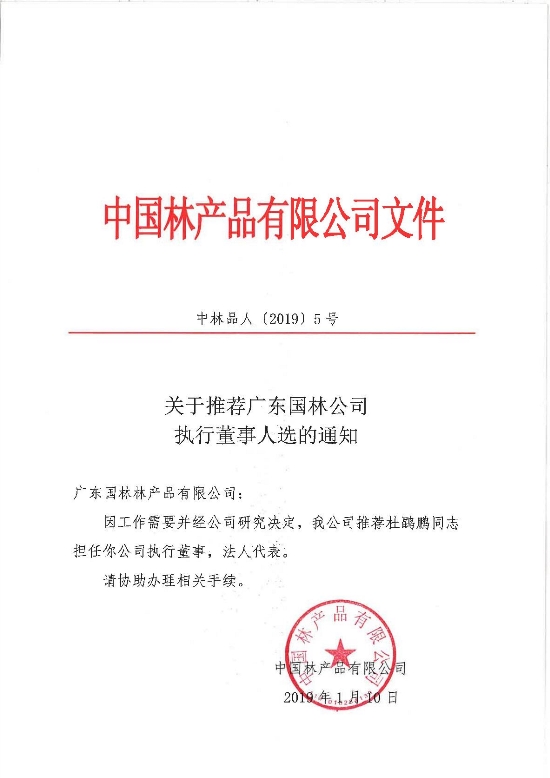 关于推荐广东国林公司执行董事人选的通知