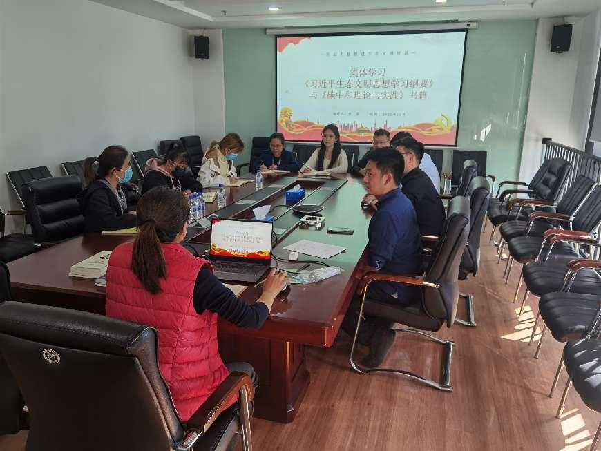 支部书记李菲带领支部党员集体学习《习近平生态文明思想学习纲要》和《碳中和理论与实践》两本书籍。李菲指出,党的十八大以来,以习近平同志为核心的党中央加强党对生态文明建设的全面领导,就生态文明建设提出一系列新理念、新思想、新战略,全党全国树立和践行绿水青山就是金山银山理念的自觉性显著增强,生态文明建设成效显著。绿色发展顺应全球经济发展大趋势,进入新时代,踏上新征程,党中央高瞻远瞩、审时度势,做出了力争2030年前实现碳达峰、2060年前实现碳中和的重大战略决策,科学回应了新时代中国特色社会主义生态文明建设发展的新要求,标定了推进生态文明建设的历史新方位。