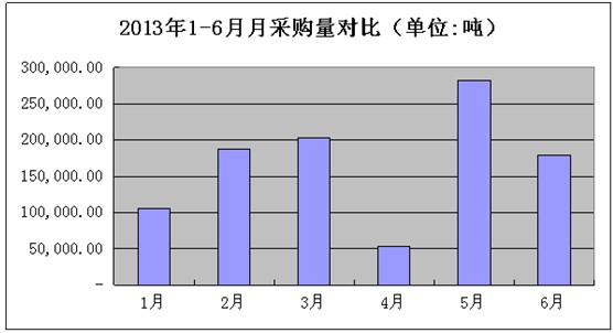 从该图可以看出,煤炭价格在上半年持续走低,而且价格仍在探底,短期内不会终结。我部门2013年上半年购买煤炭共计66万吨,为了应对持续跌价的行情,我们采取的策略是,先签订好下游销售合同,有需求之后再购买。以避免煤炭库存积压,遭受跌价损失。