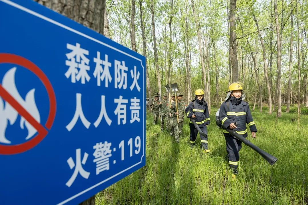 2024年4月9日,安徽省合肥市大房郢水库水源保护地庐阳经济开发区段,基干民兵正在林间巡查火灾隐患。