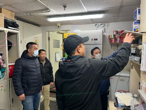 在种子公司大兴基地,详细检查了冷藏库的制冷系统、温度监控设备以及防火防盗等安全设施,确保各项设备正常运行。在安贞办公楼,逐一走访临街底商及办公楼办公区域,重点检查了消防设施配备使用、消防应急通道、餐饮环境和燃气使用等情况。