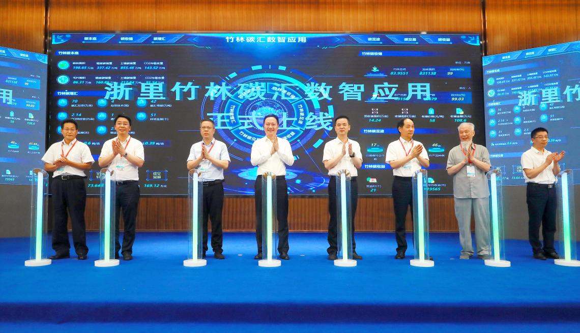 余红辉与湖州市委常委、安吉县委书记杨卫东等领导共同启动了浙里竹林碳汇数智应用。在数字化改革背景下,为全力推动竹林碳汇工作开展,找准浙江省数字政府系统“生态保护”跑道,聚焦“双碳智治”,安吉县开发了竹林碳汇数智应用场景——浙里竹林碳汇数智应用。中林集团将与安吉县政府共同推进建立浙江省竹林收储交易中心,为竹林碳汇建立数智经营档案,实现竹林碳汇全周期追踪溯源、智慧管控;同时,在森林碳汇开发、碳资产管理、CCER审定与核证服务等方面开展全方位合作,共同争取全国竹林碳汇收储交易分中心(交易所)落地安吉,打造央地绿色合作新模式。