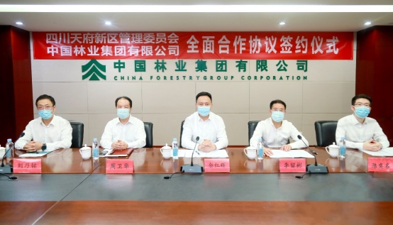 与四川天府新区管理委员会通过视频方式签署全面合作协议。四川省委常委、成都市委书记施小琳,成都市委副书记、市长王凤朝,中林集团党委书记、董事长余红辉出席仪式并见证签约。成都市委副书记谢瑞武参加签约仪式。四川天府新区党工委副书记、管委会主任陈历章,中林集团党委委员、副总经理李留彬分别代表双方签署全面合作协议。