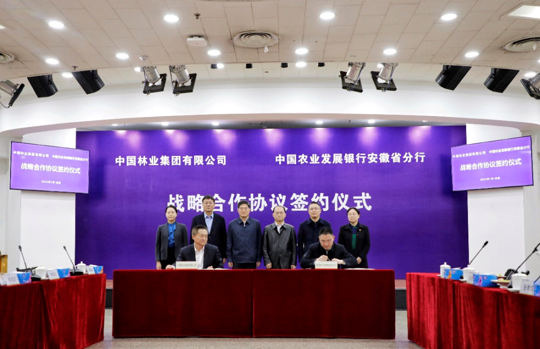 当日下午,中林集团和农发行安徽省分行,就推进安徽国家生态文明生态区建设和林业发展改革签订战略合作协议,农发行将为中林集团提供综合金融服务。
