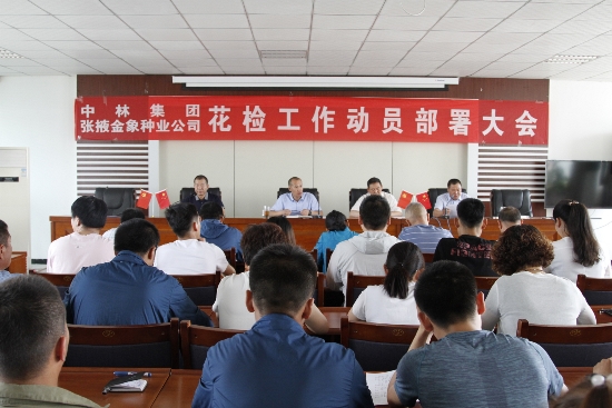 党委书记、总经理崔大庆做动员讲话。他强调:广大干部职工要正确认识企业当前面临的形势,正确对待今年制种业务的严峻考验,高度重视即将开展的花检工作,党员干部更要发挥先锋引领作用,把“守初心、担使命、找差距、抓落实”切实贯彻到花检工作中,保质保量完成今年的花检工作。
