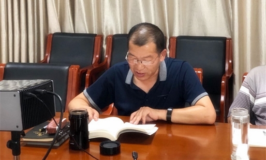 党委副书记、纪委书记王富义带领大家学习《中国共产党章程》《中国共产党廉洁自律准则》全部内容,读原著、学原文、悟原理。
