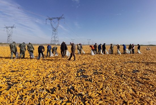 公司晾晒场地选择在日照时间长、气候干燥、荒芜人烟的戈壁滩上,六、七个临时搭建的帐篷守护着近2000亩的大晒场,为了节省用工费用,挑杂、翻晒等工作职工亲力亲为。一会儿狂风肆虐、一会儿烈日暴晒、时不时还要遭受雨水的侵袭!由于行走在玉米棒上,摔跤、崴脚不可避免。大家承受着风沙、烈日及身体极限的考验,同时还承担着不能和家人团聚而受到的埋怨......但是,金象人不畏艰险,用自已的双手为戈壁荒滩披上金装,锻造成了金象人的精神底色,为服务三农做出了积极贡献。