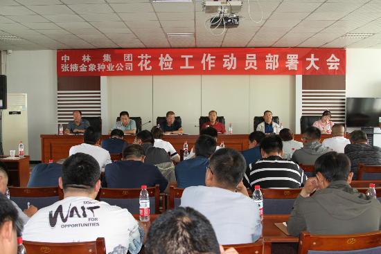 总经理助理冯斌带领学习《中林集团张掖金象种业有限公司二零二二年花检工作安排》,对花检工作做全面部署安排;各分管业务经理分别从花检工作质量要求、工作纪律、廉洁自律、安全生产等方面做动员讲话;基地代表、质控部负责人做表态发言。