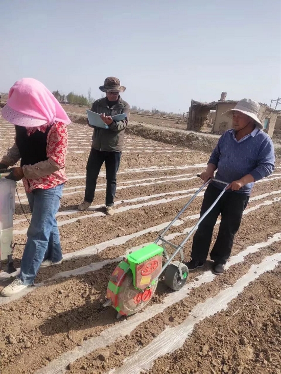 “这个品种因为后期会长成宽大叶片,所以对播种的行距,播种量的要求比较苛刻,直接决定能否正常出苗和影响到后期的产量,所以一定要把握好播种规程和播种数量,同时加强后期田间管理,防治病虫草害的发生……”基地技术员小罗围绕农户地块、播种量、种植要求以及田间管理技术等方面为农户现场示范,讲解制种田播种要求和增产诀窍。