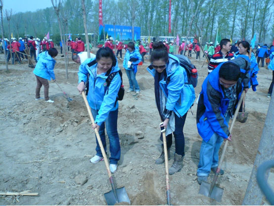 为配合2012年世界地球日“珍惜地球资源,转变发展方式”的主题,深入开展学习雷锋、学习郭明义活动,积极履行央企的社会责任,4月20日,由中国林业集团公司组织,中国医药集团总公司、中国国新控股有限责任公司三家大型中央企业500余位志愿者,在北京市延庆县植树造林基地联合举行“共建生态林,携手献爱心”大型公益植树活动,为北京添绿,为首都生态建设作贡献。我公司14名志愿者参加了本次植树活动。
