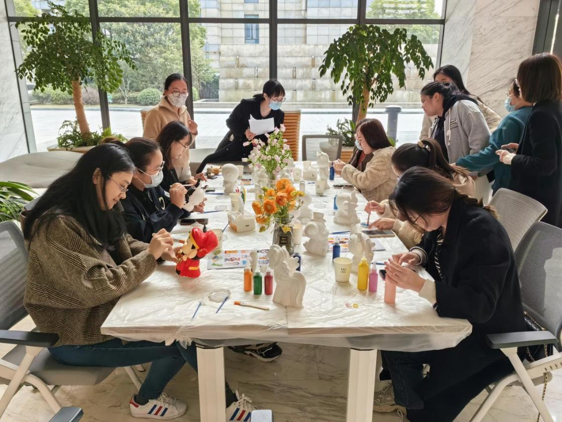 苏州国林华东商贸有限公司举办了“童心未泯,涂鸦DIY”主题活动,大家现场为石膏娃娃涂上各式各样的颜色,风格各异,尽显可爱童真,受到女员工们的热烈欢迎。公司也为每位女职工准备了甜蜜的节日礼物,以此表达公司对女职工们的节日祝福和特殊关爱。