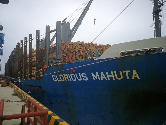 4月12日,满载新西兰原木的外轮光辉号(GLORIOUS MAHUTA)靠泊中林新民洲港进行装卸作业。码头工人和海关、港航、边防等口岸执法单位的工作人员一起,共同完成木材的装卸及检尺工作。