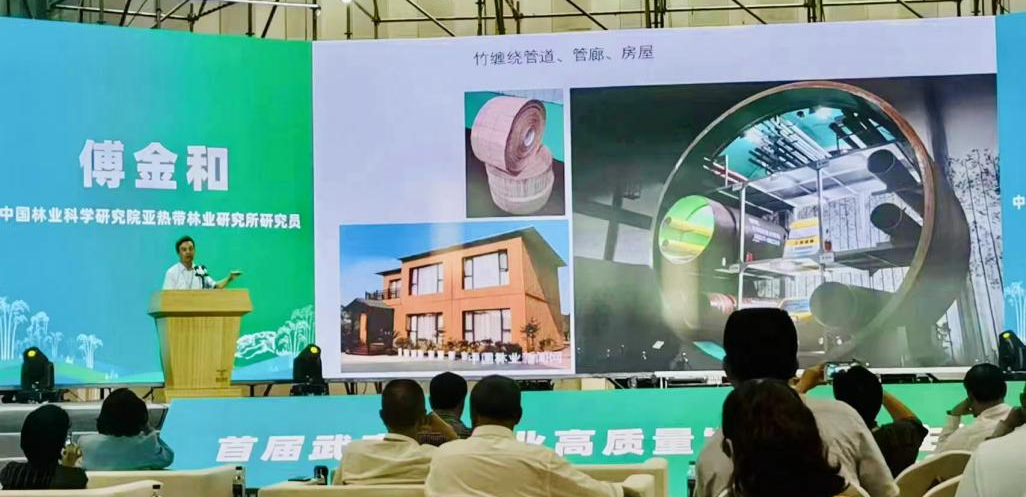 峰会现场,中国林业科学研究院亚热带研究所研究员、中林鑫宙公司产业顾问傅金和出席主论坛并作《以竹代塑 减塑降碳 可持续发展》的主题报告,分享竹子及竹缠绕复合材料等“以竹代塑”产品对碳汇、节能减排、助力国家“双碳”战略的重要意义。