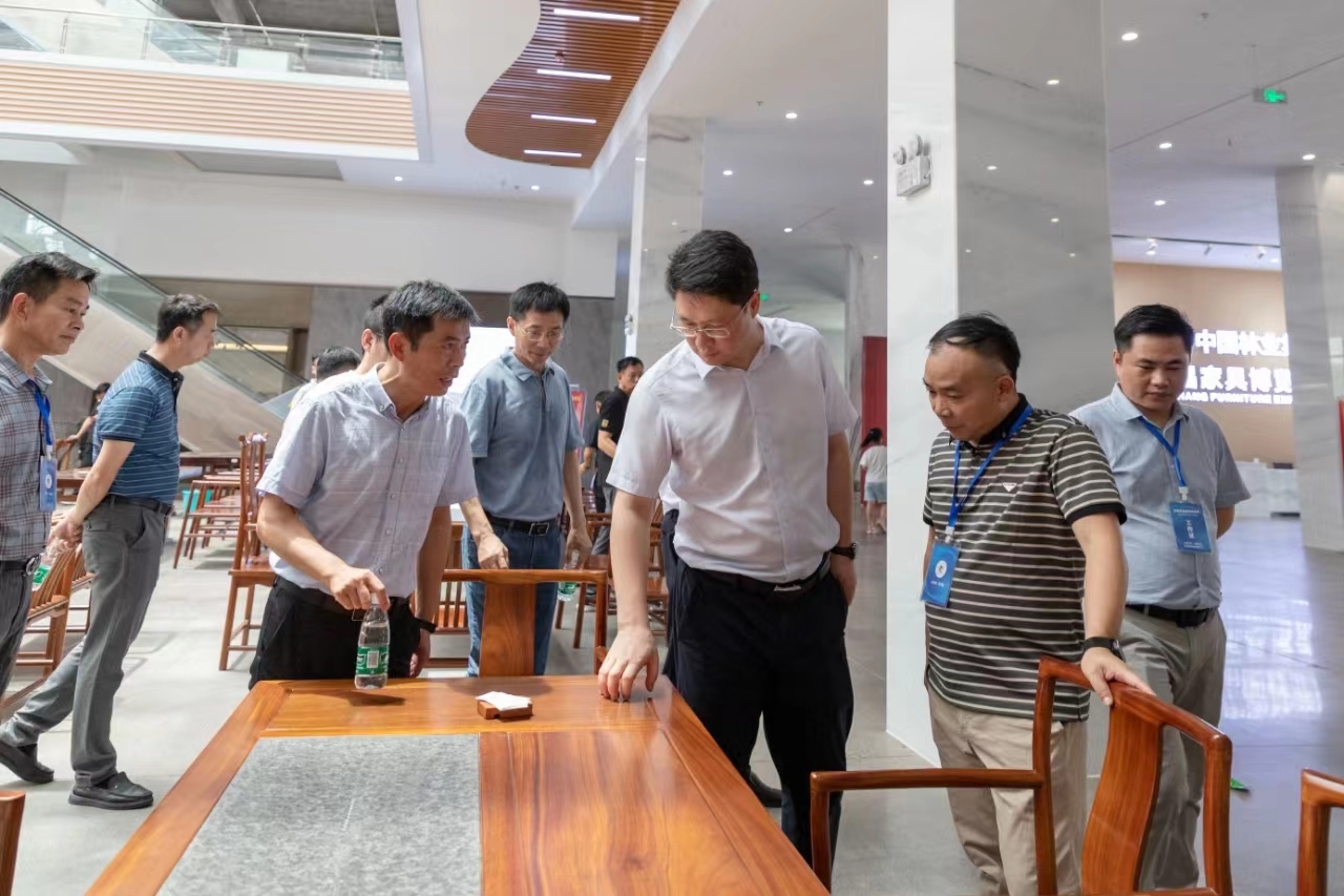 展厅内人头攒动、气氛热烈,各式各样的实木家具琳琅满目,展品涵盖实木、软体、红木、教学、办公、酒店、户外休闲等2000余款全品类中高端家具。现场参展企业促销活动层出不穷,充分调动了消费者的购物热情。魏堂华和梁少清也在展位前与企业负责人亲切交谈,了解企业参展产品、市场销售、产品订单等情况,并听取了企业品牌建设、产品创新、相关配套等方面的情况介绍。