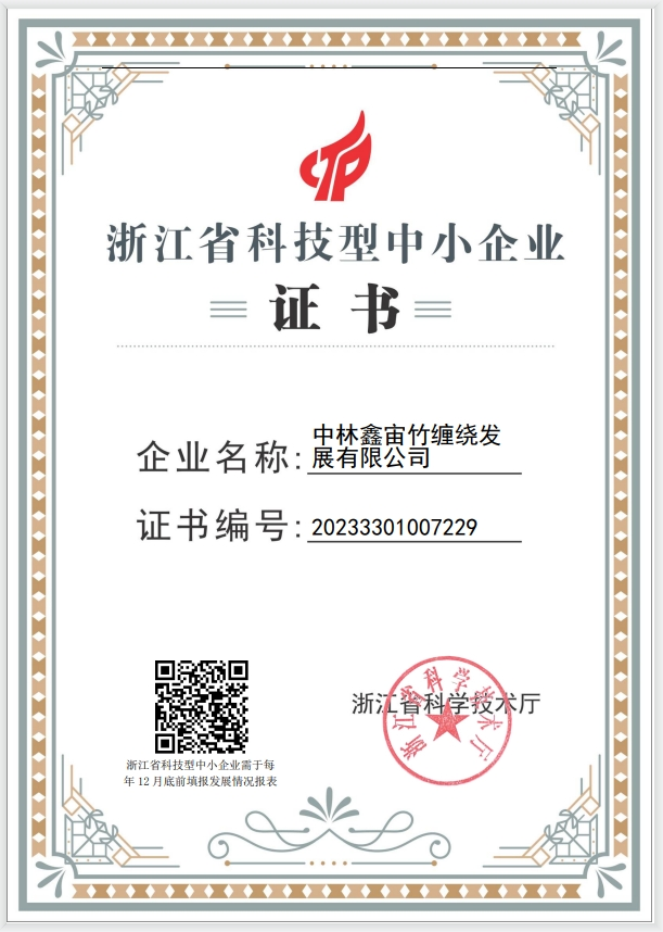 本次省科技型中小企业的认定,是对公司深耕于竹缠绕产业开展科技创新的鼓励和认可。作为创建世界一流专精特新示范企业,中林鑫宙公司将在中林集团战略引领下,不断探索竹缠绕研发途径,改进工艺质量标准,以科技创新促进企业发展,为竹产业高质量发展贡献力量。