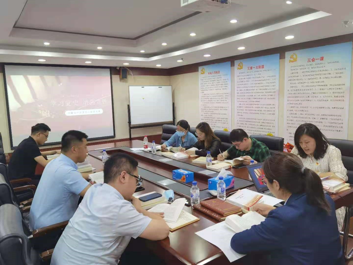 本次会议采取“领读+自学+研讨”方式进行深入学习《习近平新时代中国特色社会主义思想学习问答》和《中国共产党简史》等节选章节。党课围绕深刻认识党的发展历程、总结百年党史的宝贵经验等方面内容,简要回顾了我们党的发展历程,深入浅出地阐述了中国共产党百年奋斗的光辉历程,使与会同志对党的百年历史有了更加深刻认识,努力用党的创新理论最新成果武装头脑、推动工作,切实把党史学习教育成效转化为工作动力。