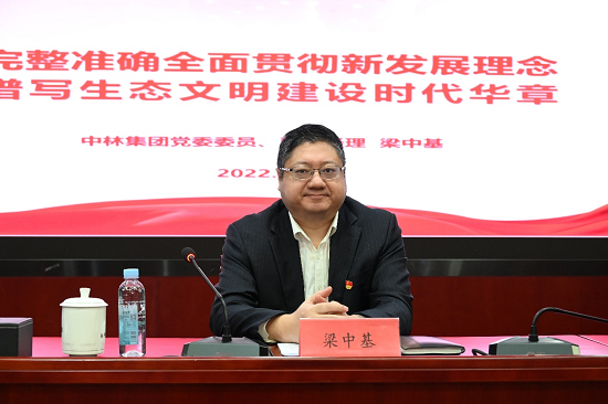 为贯彻落实党中央关于党的二十大精神宣讲工作重要部署,按照《集团党委领导班子成员开展基层党建联系点党课宣讲活动方案》安排,11月11日,集团公司党委委员、副总经理梁中基赴中国林产品集团有限公司,以《完整准确全面贯彻新发展理念 谱写生态文明建设时代华章》为题,围绕学习贯彻党的二十大精神,结合二十大赋予国资国企的新使命、新任务,为林产品公司全体党员干部讲授学习宣传贯彻党的二十大精神专题党课。林产品公司党委书记、董事长刘乃铭主持学习。