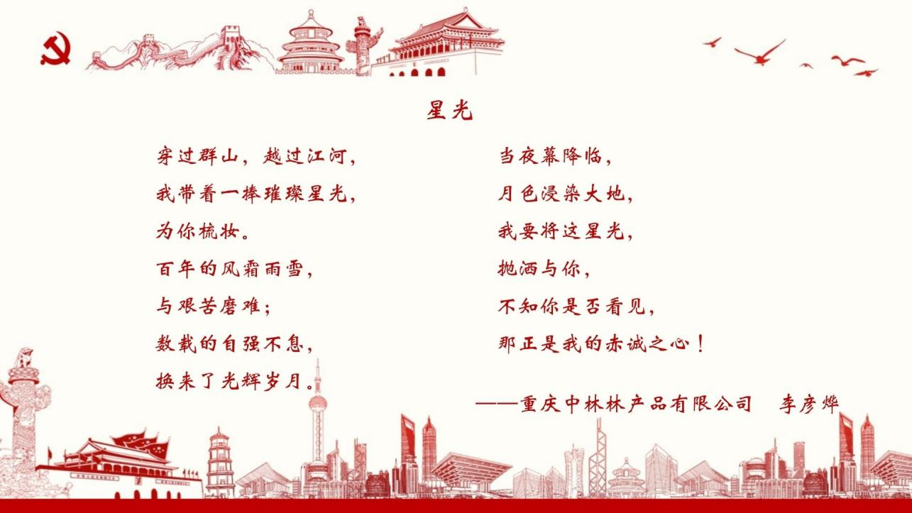 执笔以颂,吐灼灼之情;行笔至此,诉婉转情思。本期开展的是“纸短情长,献书向党”诗文征集活动,林产品公司及所属各级次企业党员、团员们献上对党的告白寄语,充分表达对党的赤子之心、对祖国的挚爱之情、永远跟党走的坚定信念,以及为生态文明建设贡献力量、奉献青春的坚定决心。