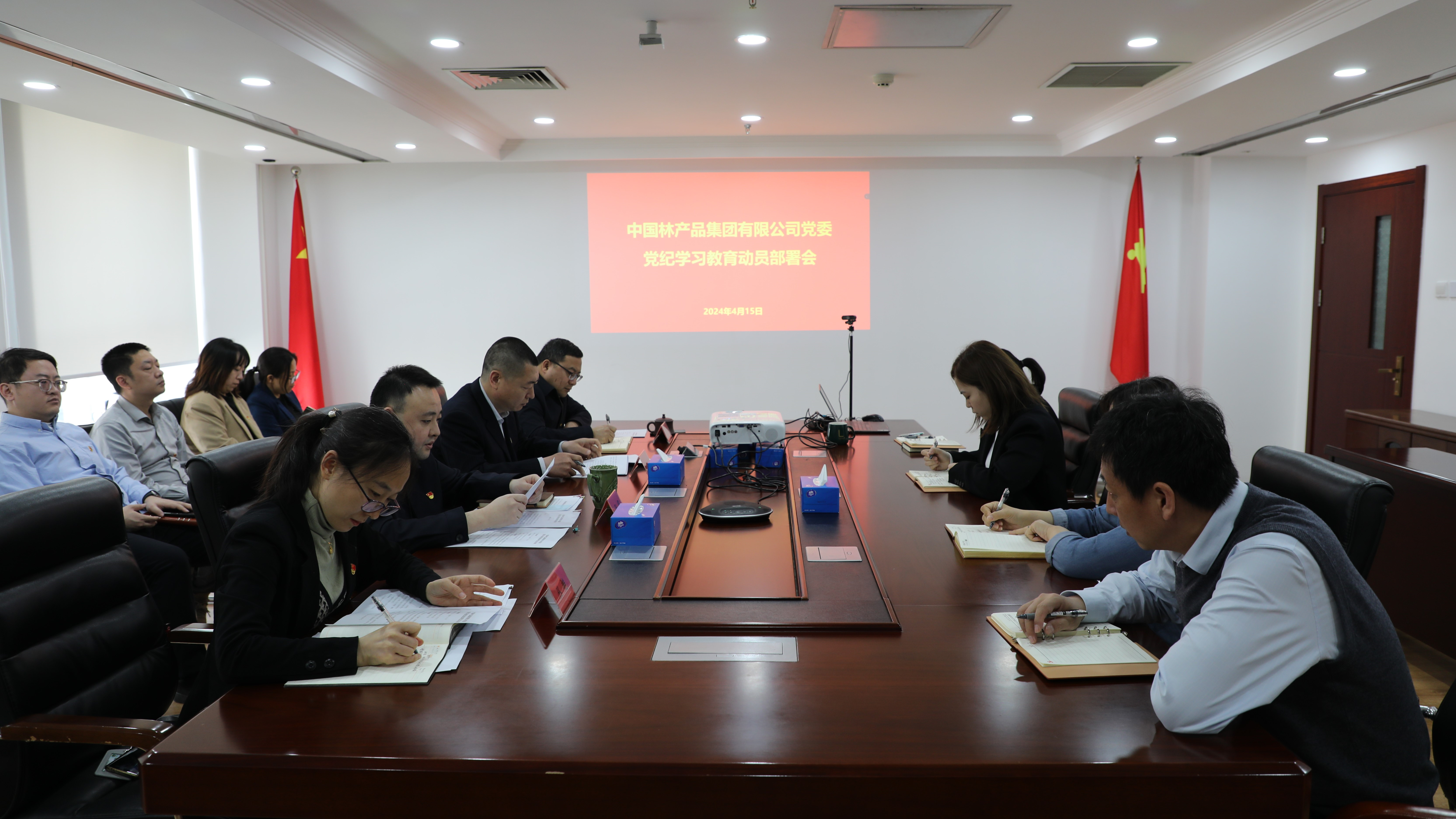 4月15日,林产品公司党委召开专题会议,认真传达学习习近平总书记关于党纪学习教育的重要讲话和重要指示精神,学习贯彻中央党的建设工作领导小组会议精神,贯彻落实《中共中央办公厅关于在全党开展党纪学习教育的通知》要求以及中林集团部署要求,锚定集团“六个全面”战略目标,结合公司改革攻坚实际部署党纪学习教育工作,以高标准严要求推动党纪学习教育取得实实在在成效。林产品公司党委书记、执行董事、总经理张霁出席会议并讲话,公司领导班子成员出席会议。