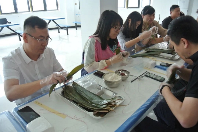 随后,活动正式开始,本次活动打破常规,通过抽签,将活动人员随机分为4组,既增加了团队凝聚力又加深了员工之间的感情。在活动环节中,各支队伍利用准备好的原材料包粽子,在规定时间内,以包得多的队伍为胜。
