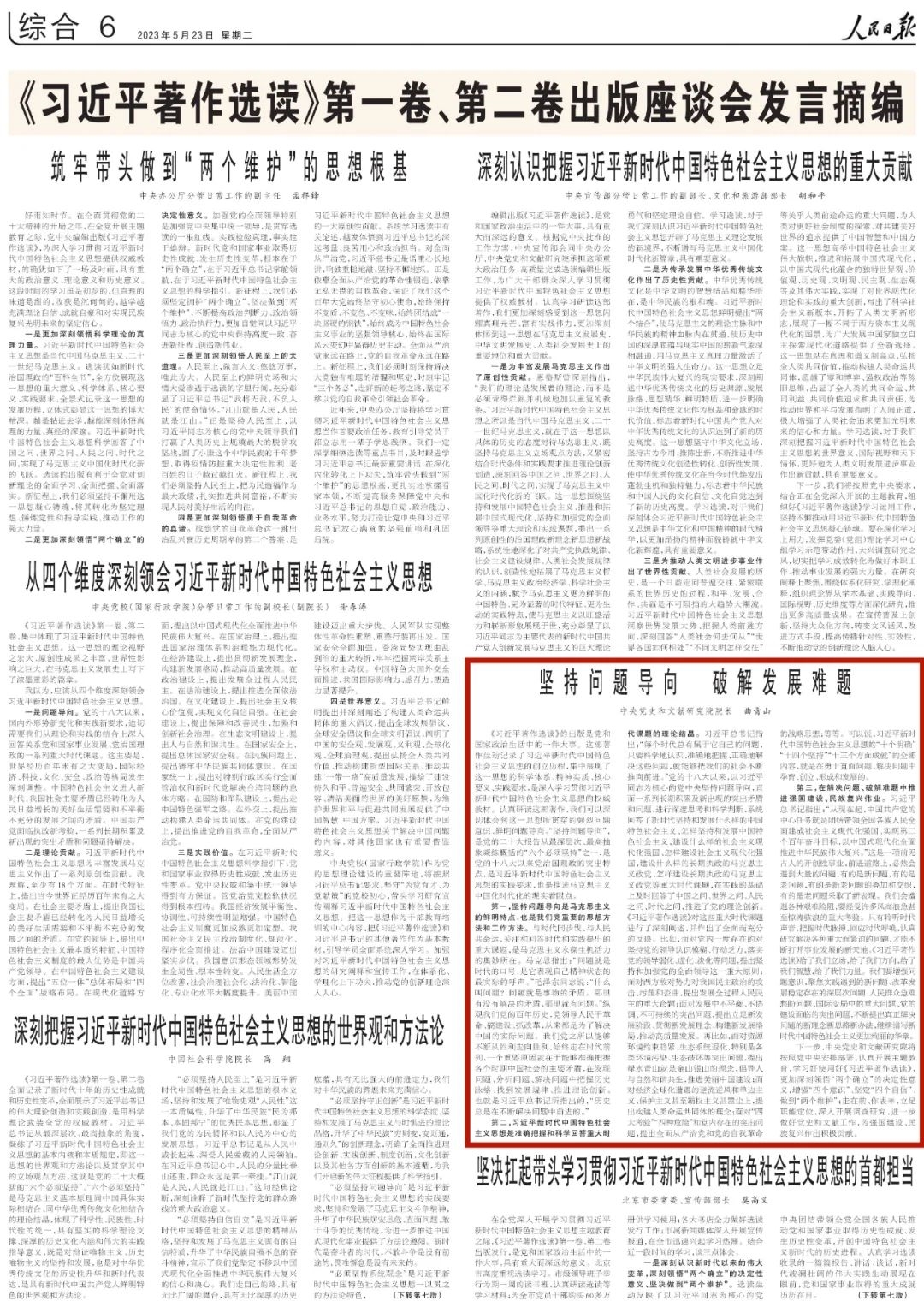 《习近平著作选读》第一卷、第二卷出版座谈会5月22日在京召开。23日,《人民日报》刊载了座谈会发言摘编。以下是中央党史和文献研究院院长曲青山所作的题为《坚持问题导向 破解发展难题》的发言。