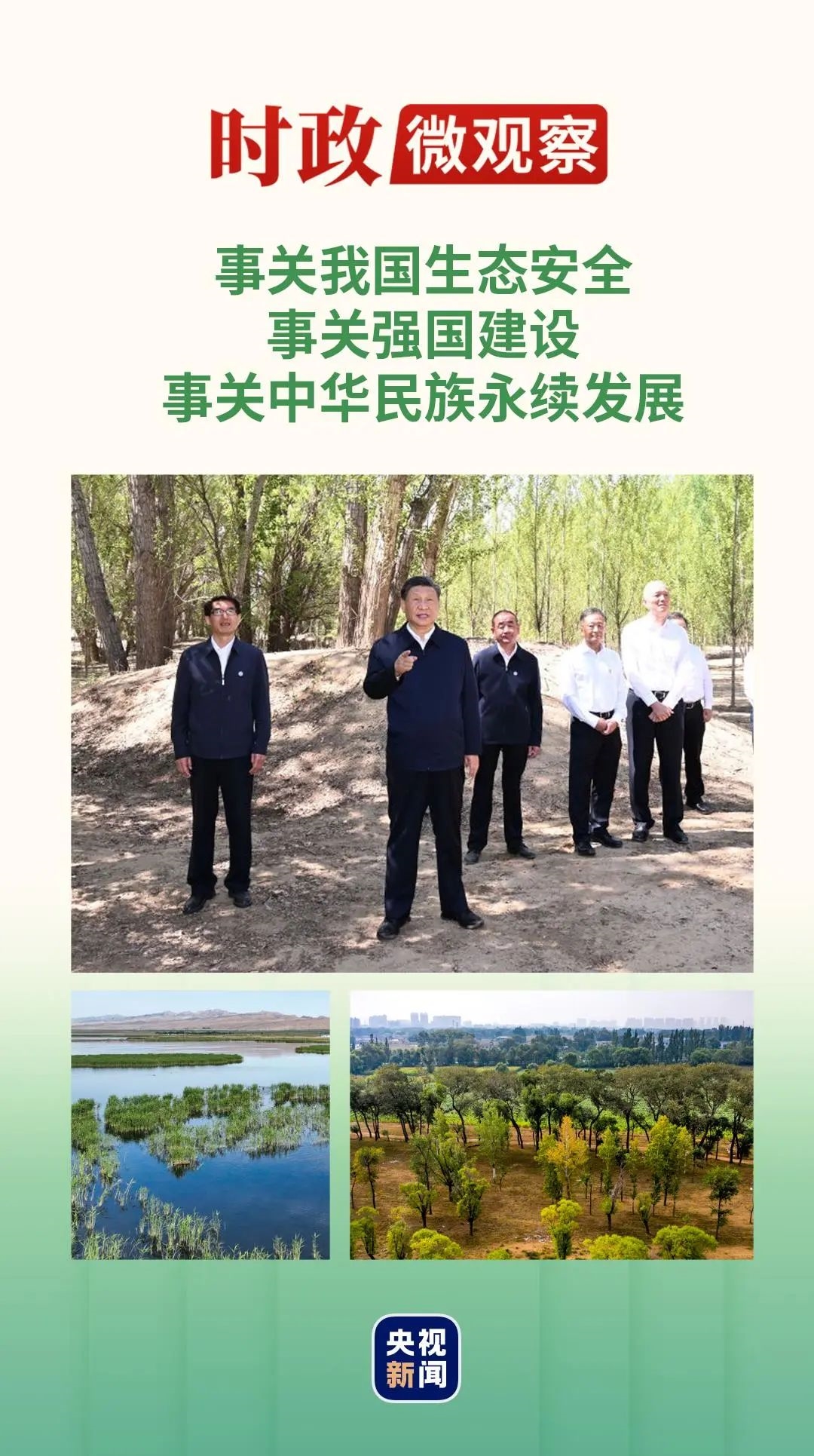 6月5日至6日,习近平总书记深入内蒙古巴彦淖尔市调研,主持召开加强荒漠化综合防治和推进“三北”等重点生态工程建设座谈会。他强调,加强荒漠化综合防治,深入推进“三北”等重点生态工程建设,事关我国生态安全、事关强国建设、事关中华民族永续发展,是一项功在当代、利在千秋的崇高事业。