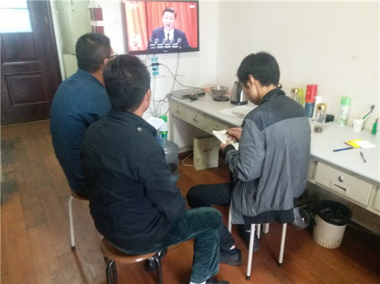 林产公司会议室,全体干部职工集体观看了十九大开幕会盛况,聆听了习总书记所作的十九大工作报告。对部分出差、休假等未能收听收看直播的党员和员工,将利用电视重播、报刊报道、网络视频等形式进行“补课”。