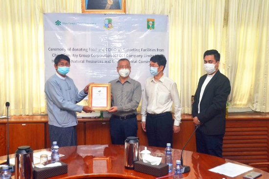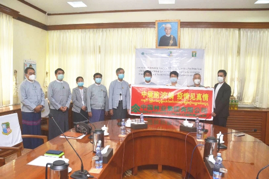 向缅甸联邦共和国自然资源和环境保护部捐赠5000万缅币(折合人民币25万元)抗疫款的捐赠仪式在缅甸仰光市缅甸国家木材公司举行。中国驻缅甸大使馆经济商务处参赞谭书富、经商处二等秘书张龙、缅甸国家木材公司董事长吴索约翰瑞巴等缅方人员和中国林业集团缅甸有限公司代表出席了捐赠仪式。
