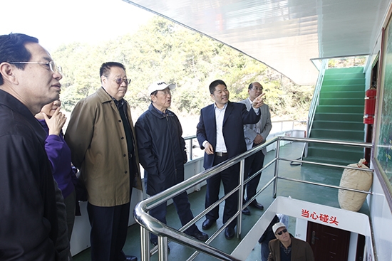 11月2-3日,全国政协常委、人口资源环境委员会主任贾治邦,副主任张基尧、凌振国率调研组一行在国家林业局陈凤学副局长、浙江省政协陈艳华副主席的陪同下专程赴千岛湖视察调研新安江流域资源环境保护建设工作,并视察了集团公司所属千岛湖发展集团公司(以下简称千发公司)。