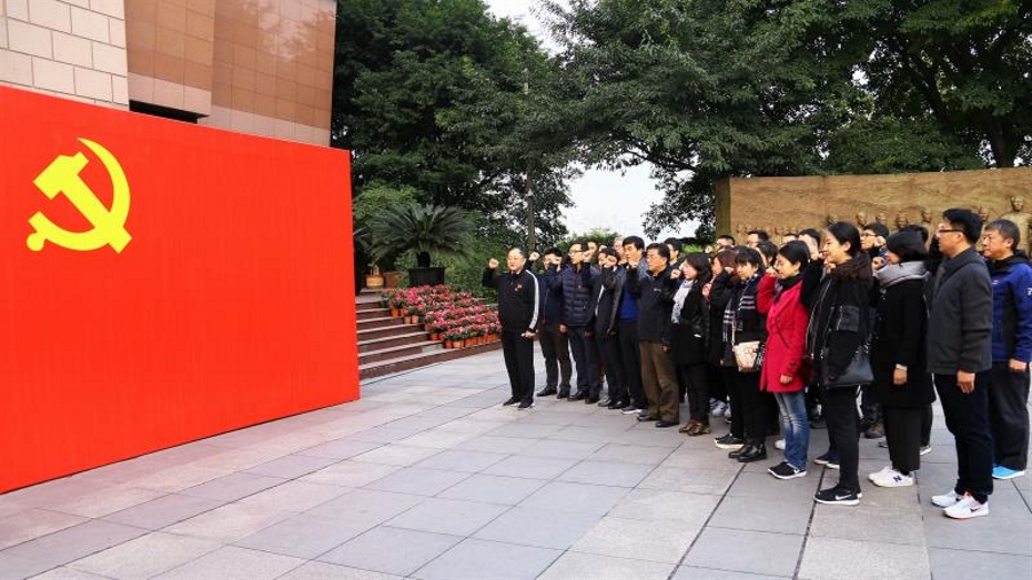 在红岩革命纪念馆,党员们了解了中共中央南方局的发展历程,参观了国共合作时期的八路军驻重庆办事处革命遗址,见证了老一辈革命家建立的不朽功勋。在红岩革命纪念馆前,刘连军带领全体党员和入党积极分子面对党旗重温入党誓词,庄严宣誓。