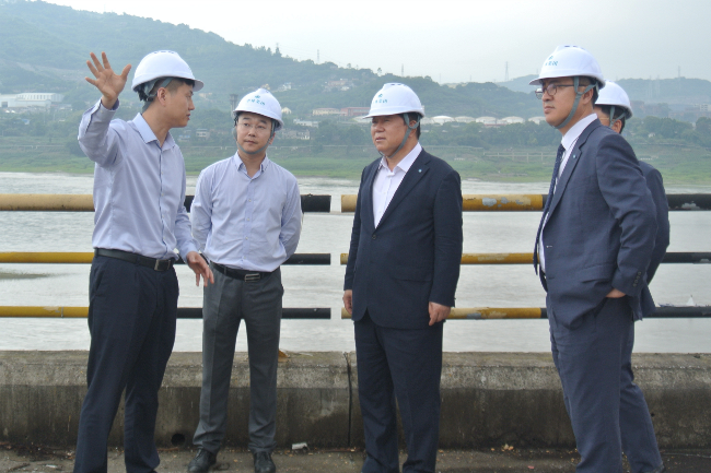 河泰仲一行实地参观了佛耳岩码头、贸易港项目建设现场等地。期间,张澄旭对项目概况、建设进度、招商情况等内容进行了详细介绍。