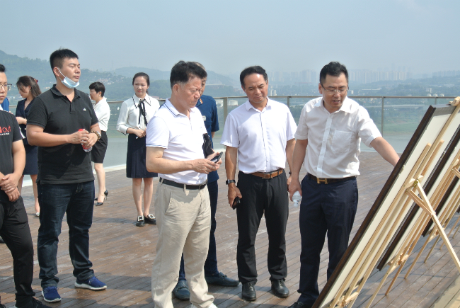 郑文贤对许照发一行的到来表示了热烈的欢迎,并陪同他们实地调研了佛耳岩码头、贸易港项目建设现场等地。在项目展示中心,魏健洋详细介绍了贸易港项目建设进度、区位优势、产业布局、园区功能等情况。