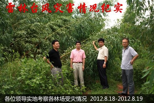 台风过后,集团公司张樟德总经理和总公司朱成庆总经理等领导密切关注我雷林的受灾情况,多次电话询问灾情,慰问职工。8月18日,总公司委派马双彪副总经理带领总公司相关部门同志赶到湛江,深入各林场、生产一线调研受灾情况,指导抗灾复产工作。