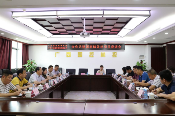 高峰林场副场长卢中强及相关业务负责人,广西中林国控总经理覃世杰,副总经理薛鹏、覃毓及相关业务负责人出席此次座谈会。