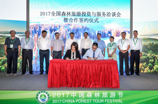2017年9月26日上午10时许,在上海世博展览馆举行的2017中国森林旅游节旅游投资与服务洽谈会上,宁波市林场与中国林业集团公司所属的宁波中林森林旅游发展有限公司签约,中国林业集团公司投资50亿元开发四明山国家森林公园商量岗林区,将其打造成为森林体验、森林养生基地、华东地区国际会议休闲基地、新型旅游度假区和中国南方山地冰雪运动基地。