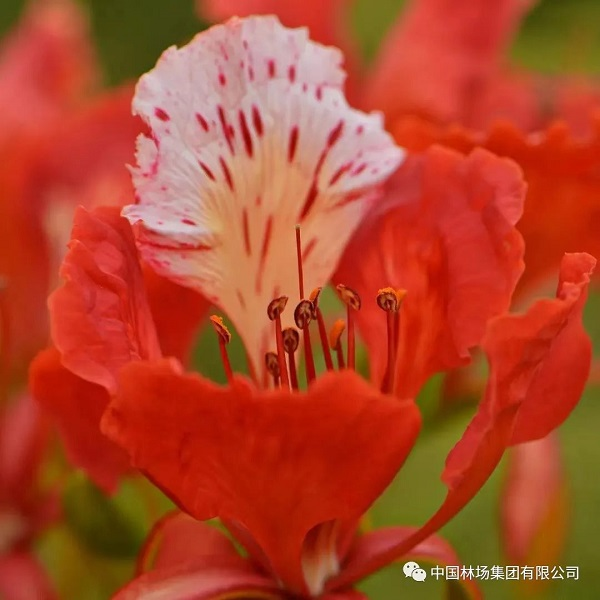 凤凰木(拉丁学名:Delonix regia)取名于“叶如飞凰之羽,花若丹凤之冠”,别名金凤花、红花楹树、火树、洋楹等。凤凰木因鲜红或橙色的花朵配合鲜绿色的羽状复叶,被誉为世上最色彩鲜艳的树木之一。凤凰木是非洲马达加斯加共和国的国树,也是厦门市、台湾台南市、四川攀枝花市的市树,广东汕头市、广东湛江市(民国时期)的市花,汕头大学、厦门大学的校花。花语为:离别、思念、火热青春。