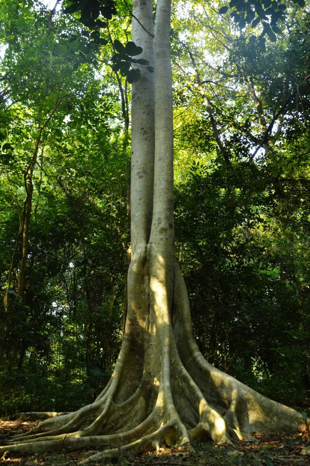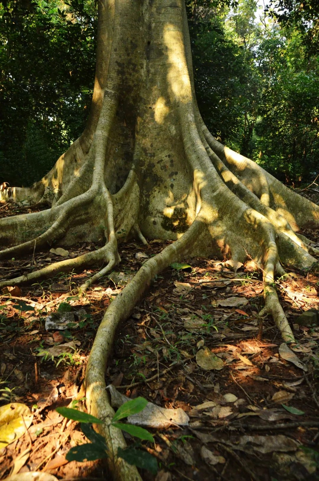 第三,由于热带雨林处在多雨,潮湿的气候条件,土壤中的水分在很长的时间内总是处于饱和或近于饱和的状况,大块的板根帮助植物根系进行呼吸,让植物在多雨的潮湿环境中也能正常生长。