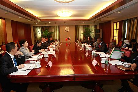 2014年10月15日上午,国务院国资委阎晓峰秘书长会见了肯尼亚国民议会公共投资委员会代表团。