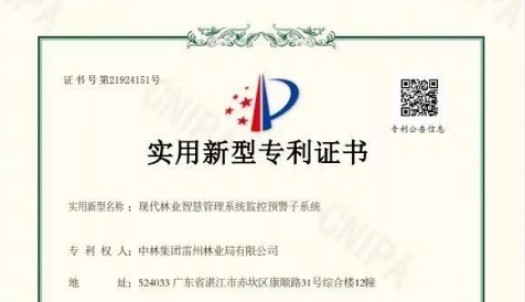 近日,雷林公司申报的国家实用新型专利“现代林业智慧管理系统监控预警子系统”获得国家知识产权局授权。