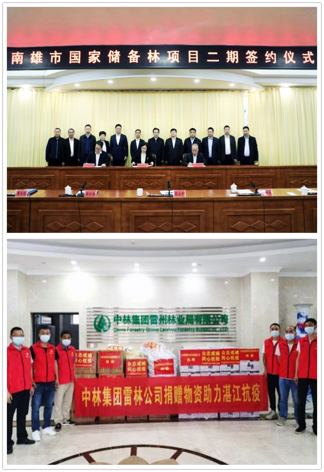中林集团雷州林业局有限公司以党建为引领,开启“党建+防疫”模式,积极配合地方政府落实各项疫情防控要求;同时,主动履行社会责任,向湛江市捐赠抗疫急需物资,并组织职工积极参加社区防疫志愿各项工作。面对严峻的生产任务,该公司一手抓疫情防控,一手抓生产经营,大力推进国储林项目建设,快速启动肇庆市国家储备林基地建设项目林地收储工作;签署了南雄市国家储备林项目战略合作协议,全力推进南雄市国储林项目建设工作。