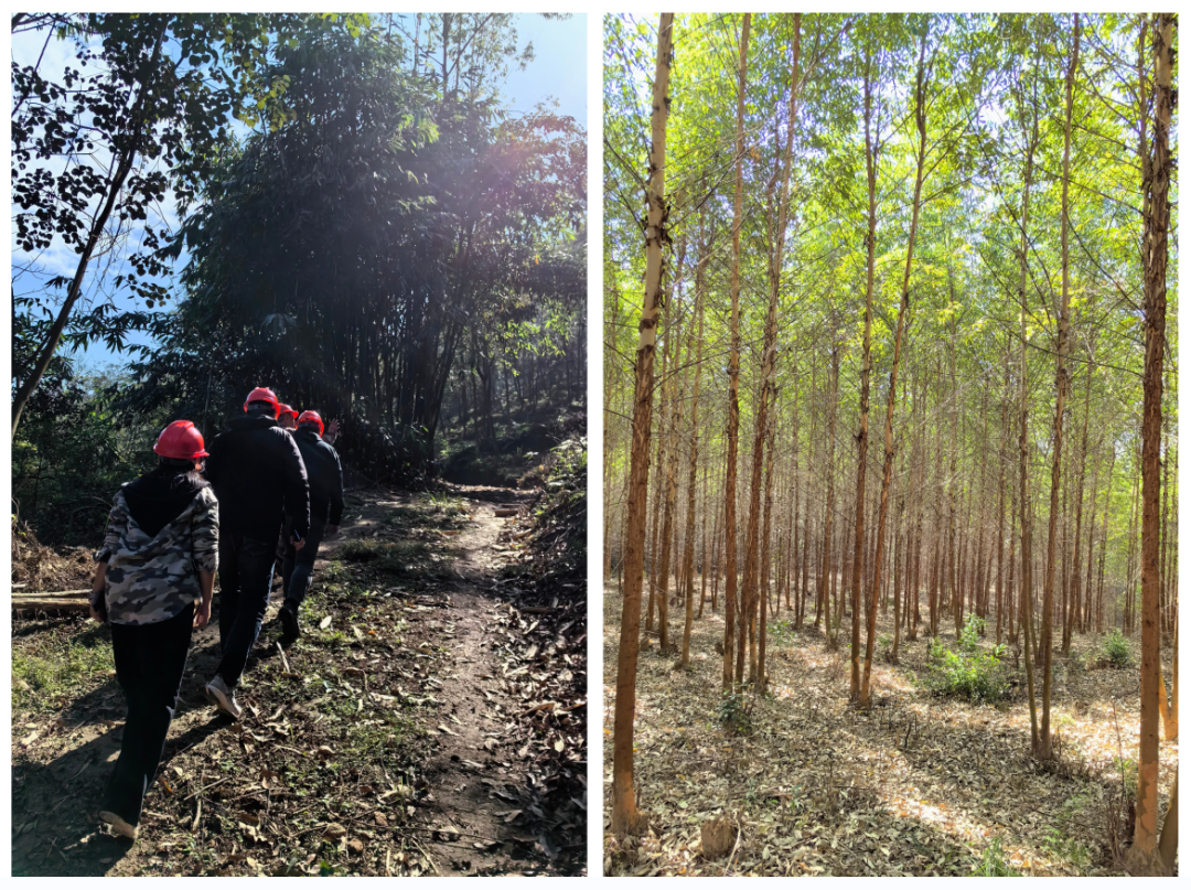 为深入推进科学桉树改造,充分发挥桉树种植生态经济社会效益,公司党支部一行到永安市调研指导桉树改造工作,沿着延爽工区、攀龙工区等基地实地查看了桉树改造情况。永安市虽为亚热带季风气候,但海拔较高,冬季气温低于0度,造成桉树林大面积冻害。公司积极推进桉树改造,从林木个体差异、林分发育阶段和树种相互关系等角度进行精准经营调控,将桉树退化林导向珍贵阔叶树种为主的多树种混交兼用林,增强森林的多种功能,努力培育健康、稳定、优质、高效的森林生态系统,助力林业产业高质量发展。