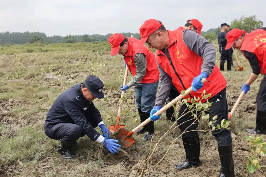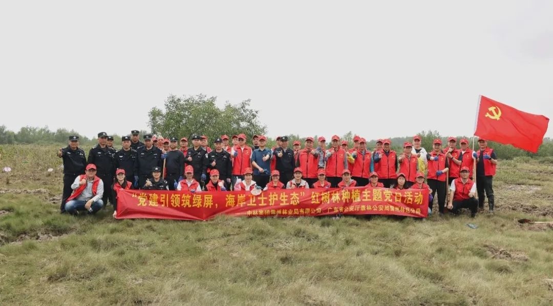 3月12日植树节之际,雷林公司联合广东省公安厅森林公安局雷州林区分局,以“党建引领筑绿屏 海岸卫士护生态”为主题,组织党员干部到雷林公司中标营造的红树林项目——雷州市万亩级红树林示范区建设项目(一期)开展义务植树主题党日活动。