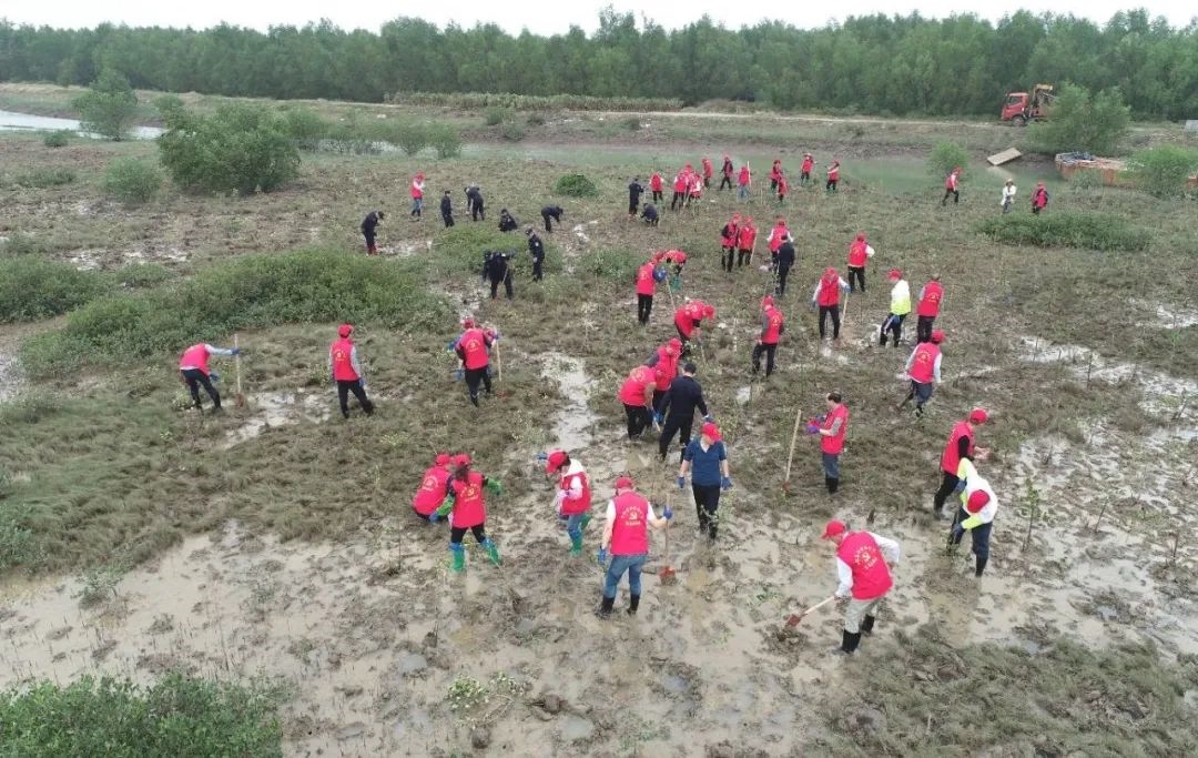 尽管汗水浸透衣衫,沼泽泥土沾满手脚,但大家都毫不退缩,一鼓作气,顺利种植红树林1000多株,并分别在自己种植的树苗上亲手挂上“责任牌”。此次植树活动,是雷林公司以“党建红”引领“生态绿”,进一步发挥基层党组织战斗堡垒作用和党员先锋模范作用的具体举措,同时也是雷林公司推进生态文明建设、绿美广东生态建设及湛江红树林之城建设的生动实践。