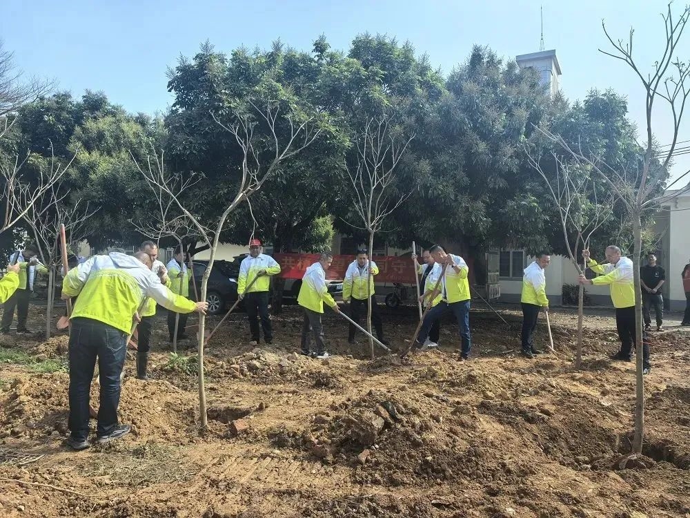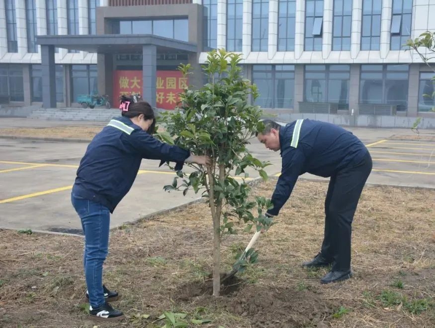 在大家的共同努力下,一株株新树已稳稳扎根于此,在春日的细雨中显得格外生机勃勃。此次植树活动不仅增强了职工们的植绿护绿意识和团结协作精神,更为产业园区增添了一抹盎然新绿。