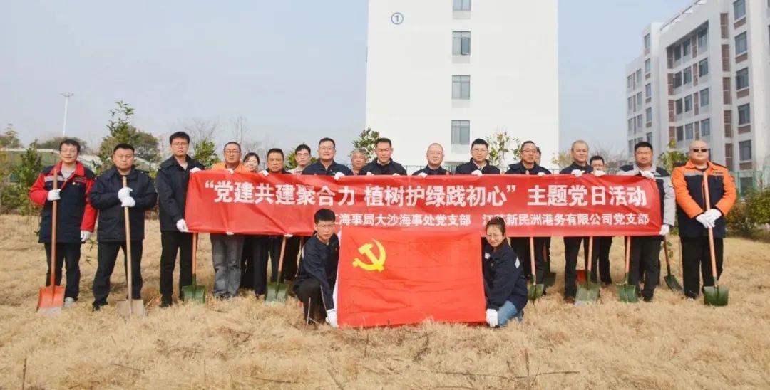 3月11日,中林新民洲港党支部与镇江大沙海事处党支部联合开展“党建共建聚合力 植树护绿践初心”主题党日活动。