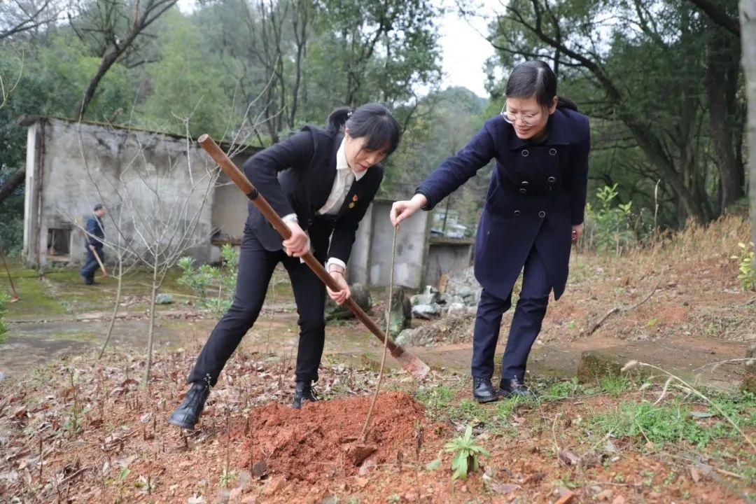 大家齐心协力,种下了35棵黄花铃,为村民增绿一抹清新绿意。植树过程中,党员干部还积极与村民交流,了解他们的生活状况,并结合河唇镇城镇规划,向村民讲述绿化对改善水库周边居住环境,提升生活品质的重要性,引导村民树立环保意识,共同参与环境整治,为建设美丽家园贡献力量。
