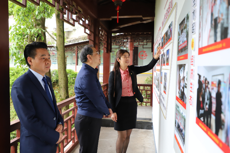 、经营生产和队伍建设的情况汇报,考察了披云山庄全国示范性劳模与工匠人才创新工作室、党建文化和质量品牌文化长廊,并调研了解了“中林两山学院” 筹建情况。