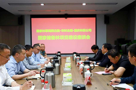近日,国家林业和草原局西北调查规划院院长李谭宝一行到中林集团重庆林投公司调研重庆国家储备林项目建设情况,就重庆国储林项目规划建设、产业布局发展等方面进行深入交流,并初步明确下一步合作方向。