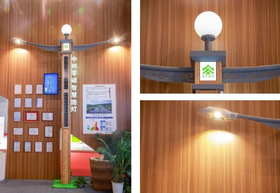 在节能减排方面,中林集团带来了全新产品——大功率零碳光能智慧路灯,其采用大功率COB路灯散热技术,被国家科技部鉴定为国际先进水平;搭载了独立的光能发电、转换、储能等装置,配备无线远程控制、环境监测、数据采集、发布等智能系统,实现数字化、网络化管理。灯杆部分采用竹缠绕技术制作,安装便捷,无需布线,支持连续15个阴雨天照明用电,相比传统市电照明方式,节能百分百,减少更多碳排放。